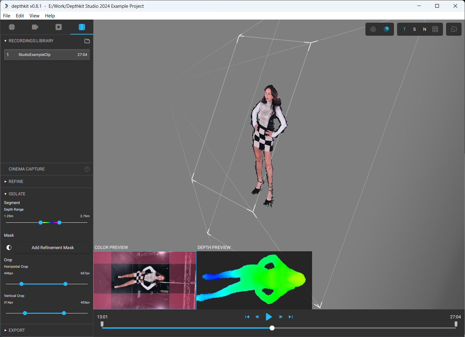 • Load the project in Depthkit. The edited take should now be editable as a Depthkit Core capture.