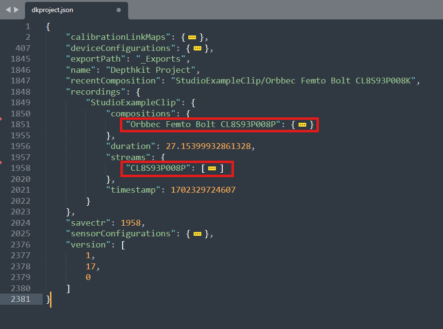 • Open your Depthkit project JSON in a text editor.