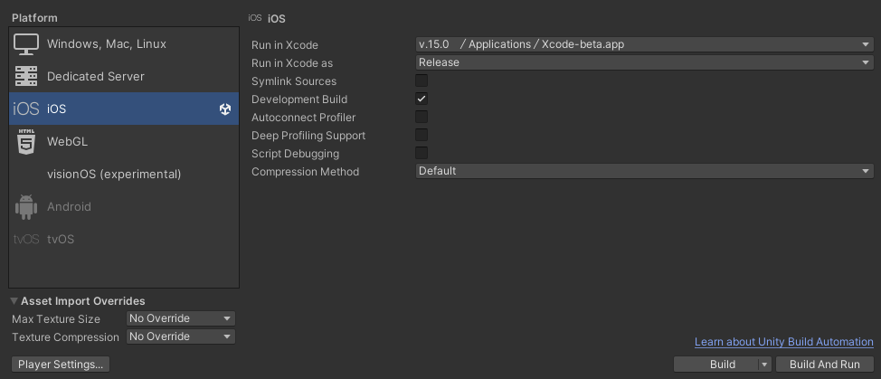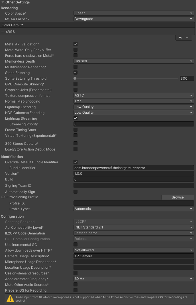 @WhittSellers I was able to match your build and player settings exactly and render both a Shader Graph and VFX look on the phone (though I am having trouble setting up the AR camera render layer 😅). The only difference I can spot is the Xcode version you’re running: 15.0, while I am running Xcode 15.4. Is there another constraint that’s preventing you from updating?