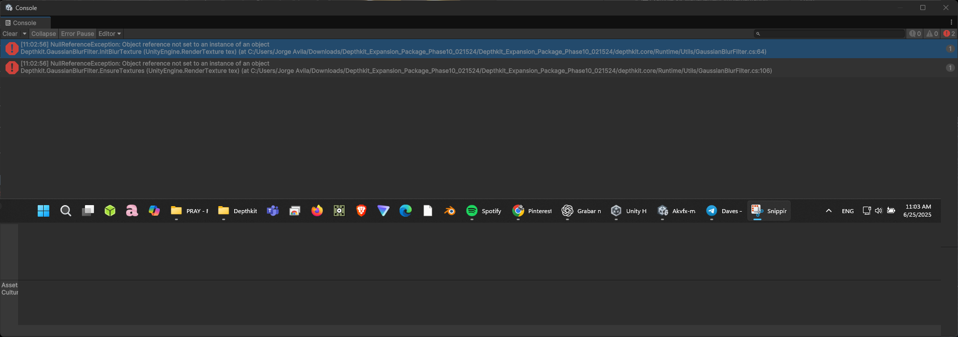 GaussianBlurFIlter error unity plugin