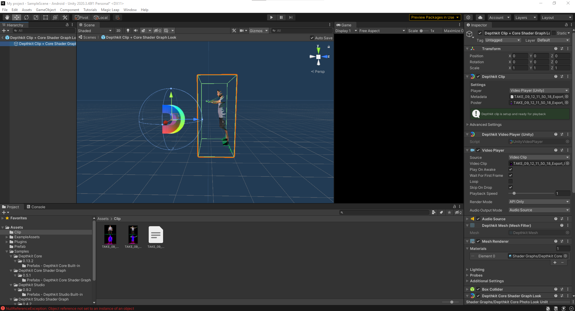 - Depthkit Core (with the sample prefabs, not AV Pro)