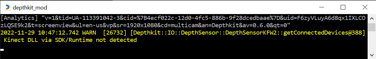 I’m getting this warning when I start Depthkit, and can’t use the program: DepthSensorKFW2::getConnectedDevices@386] Kinect DLL via SDK/Runtime not detected.
