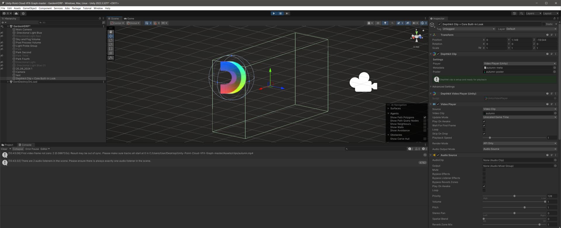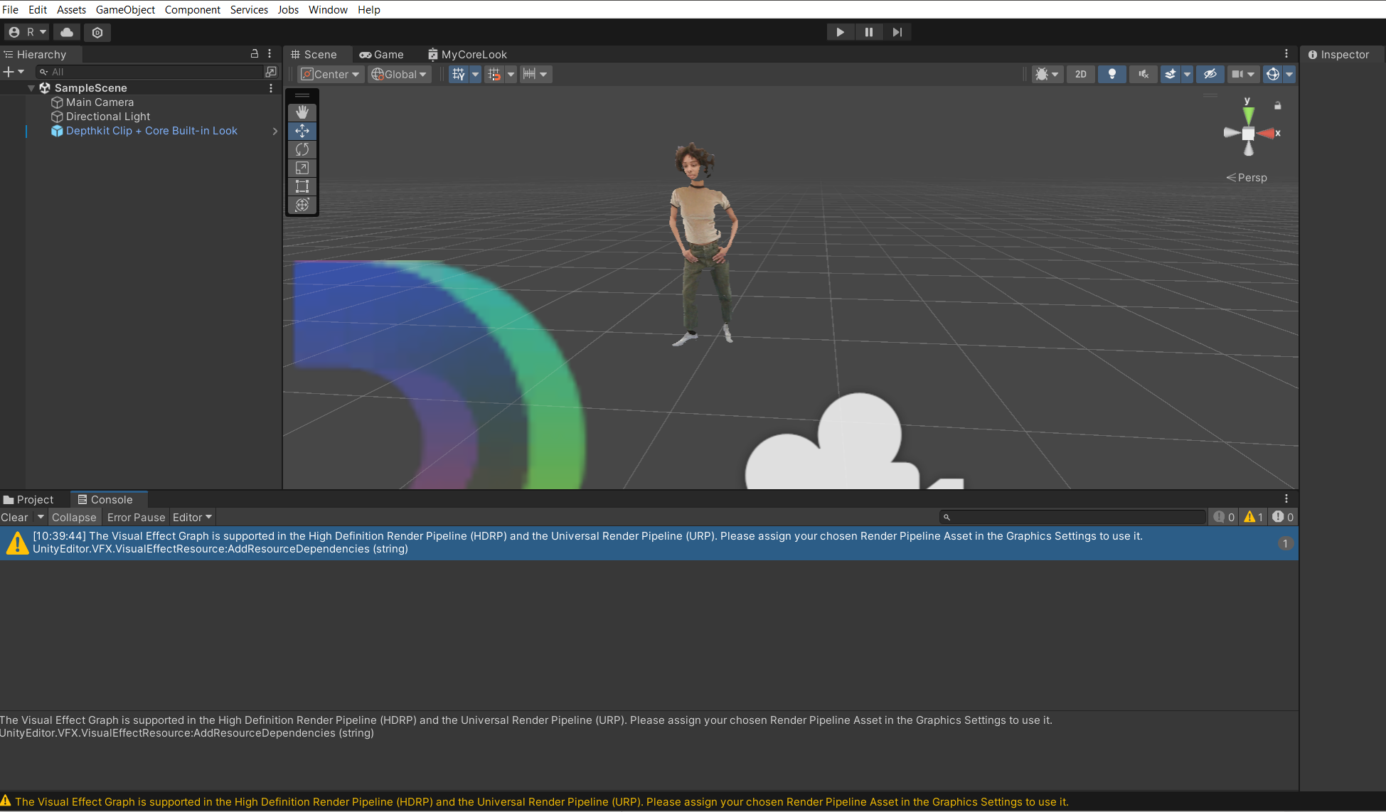 Have tried on both HDRP and URP to test the compatibility - the Depthkit core look clips show up on URP, but the VFX Graph looks wont show on either URP or HDRP (A particle system spawns but doesn’t seem to be connected to the Position or Colour Map.