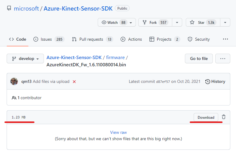 - Download firmware from Azure-Kinect-Sensor-SDK/firmware at develop · microsoft/Azure-Kinect-Sensor-SDK · GitHub