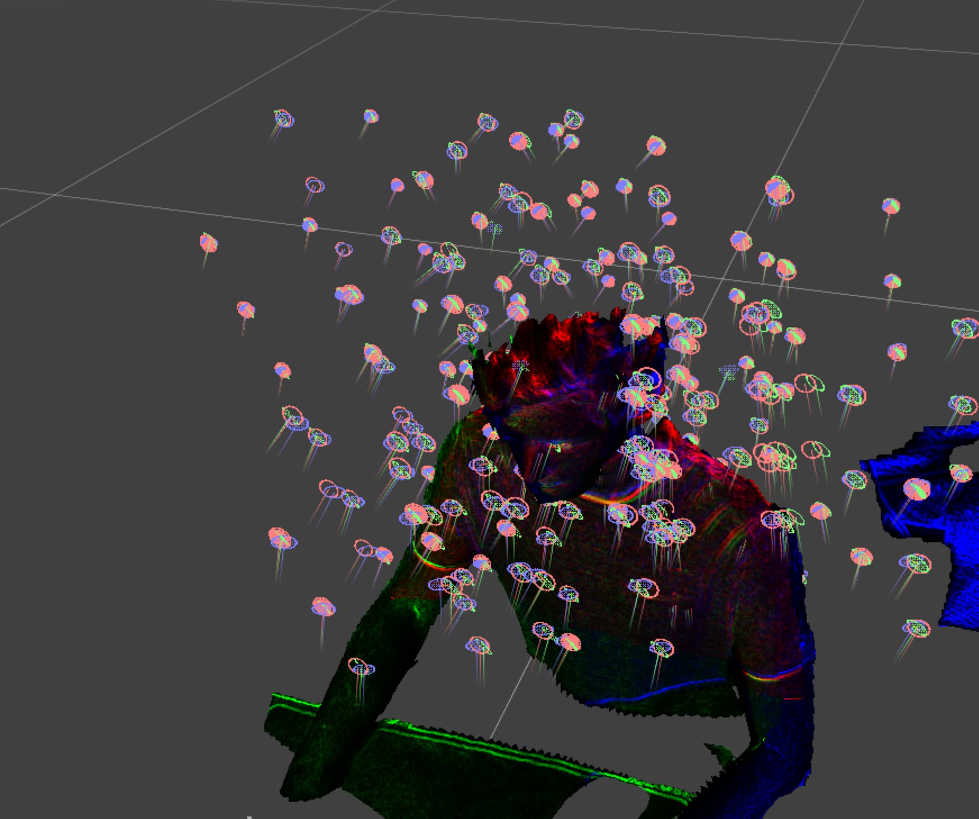 Either of two things may be contributing to texture misalignment (seen here between Sensor 1 in red and Sensor 2 in green):