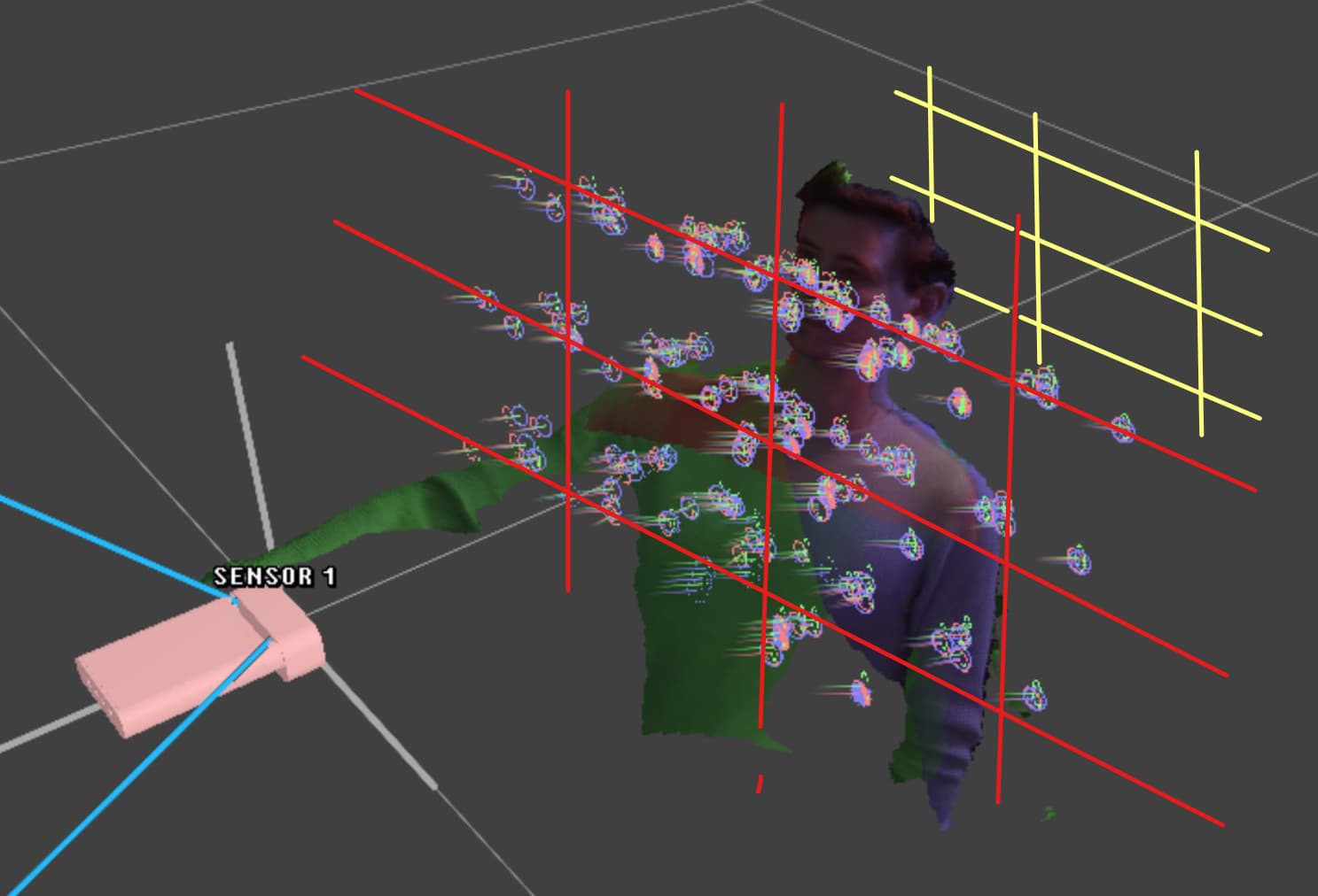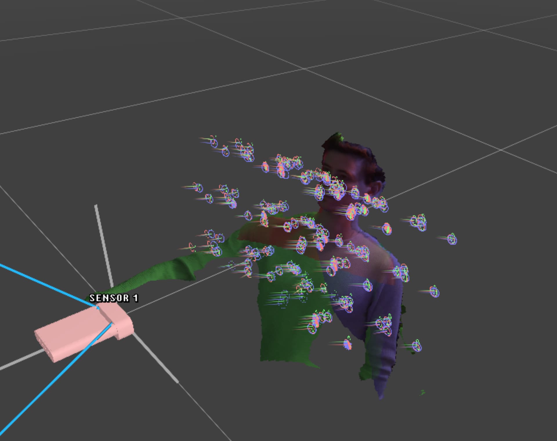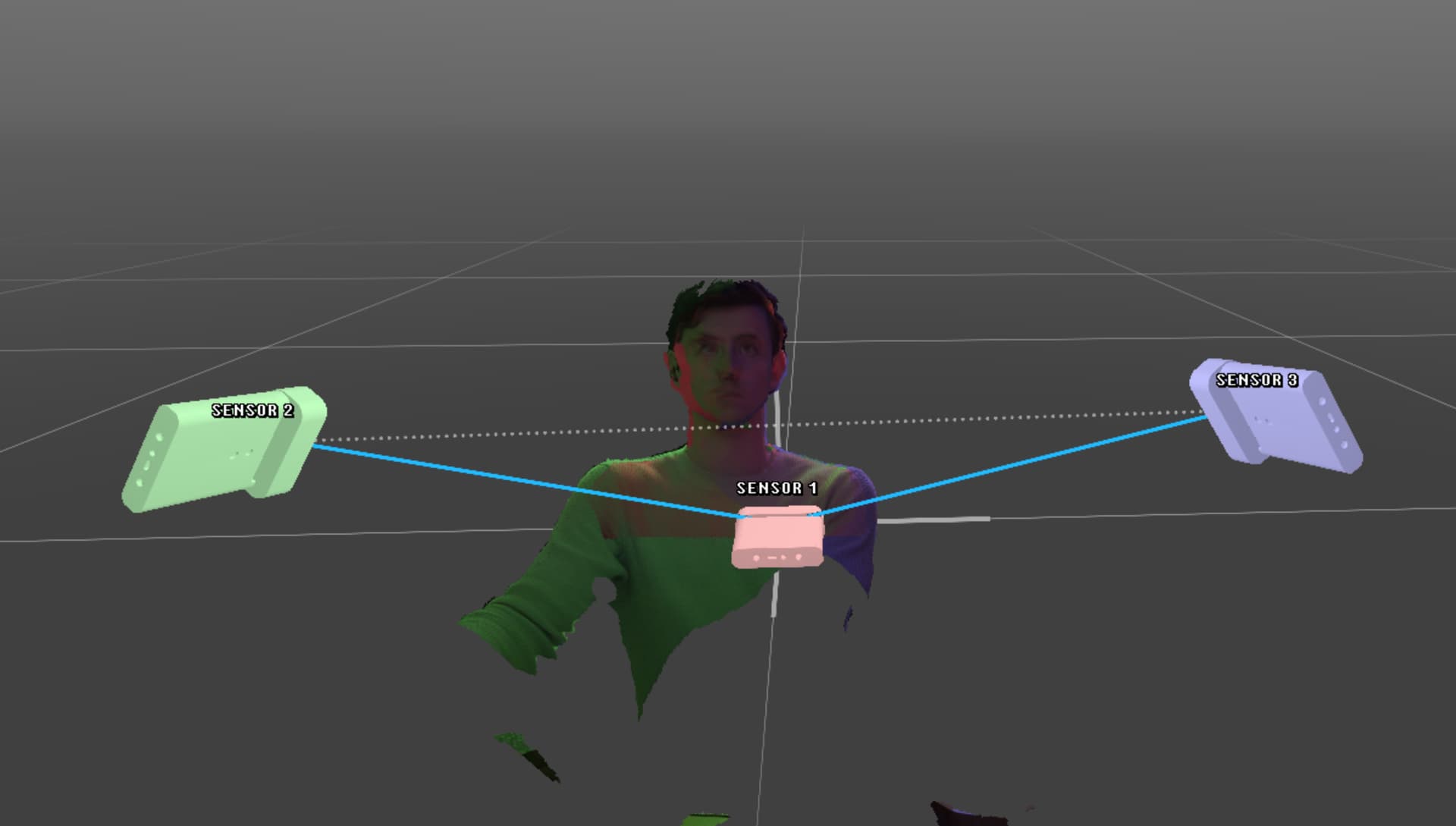 Depending on the spatial agency of your viewer, you may want to bring the flanking sensors further out to the sides, as viewing the subject from an angle beyond the physical sensor will reveal the missing geometry in the back.